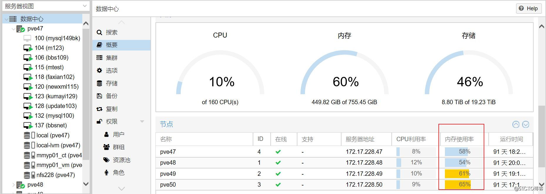 2.统一管理界面:web管控物理节点、虚拟机、容器、存储、网络、克隆、迁移、备份、恢复、去中心化存储ceph...